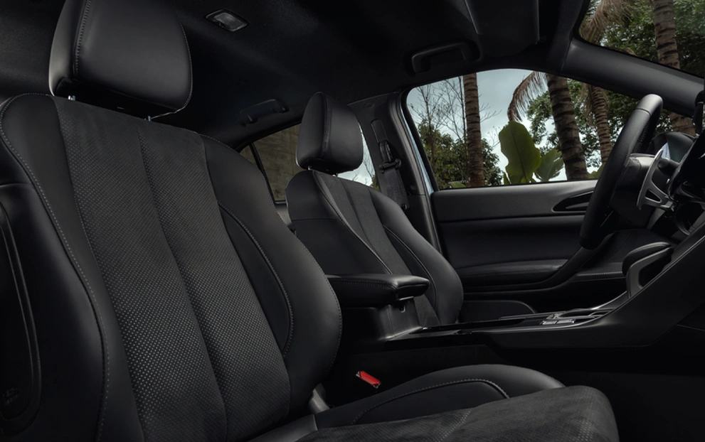 Bancos com revestimento premium em camurça com costuras na cor cinza
